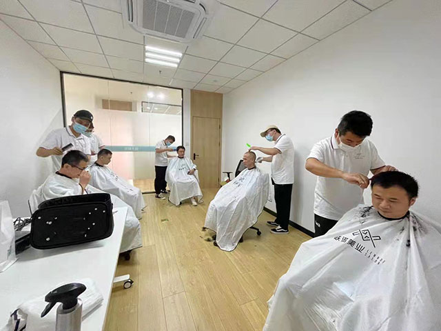 為更好助力復工復產(chǎn),用行動踐行優(yōu)質服務,展現(xiàn)國企責任與社會擔當,9月4日下午,揚州聯(lián)諾美業(yè)的理發(fā)師們趕赴聯(lián)環(huán)集團和西湖科技創(chuàng)業(yè)園為職工提供義務理發(fā)志愿服務。